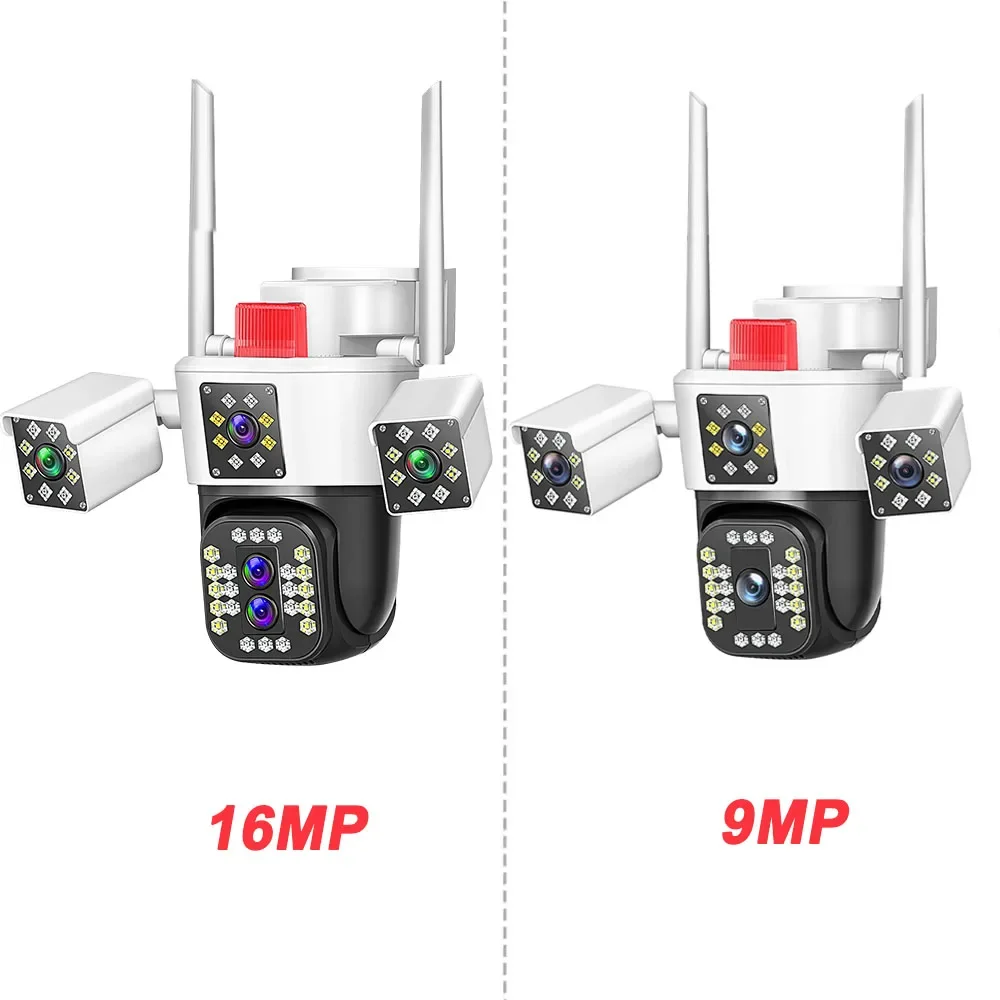 16MP 8K Wifi Security Cameras Four Len Three Screens 10X Zoom PTZ Video Cam Auto Tracking 6K Waterproof Outdoor Surveillance Cam