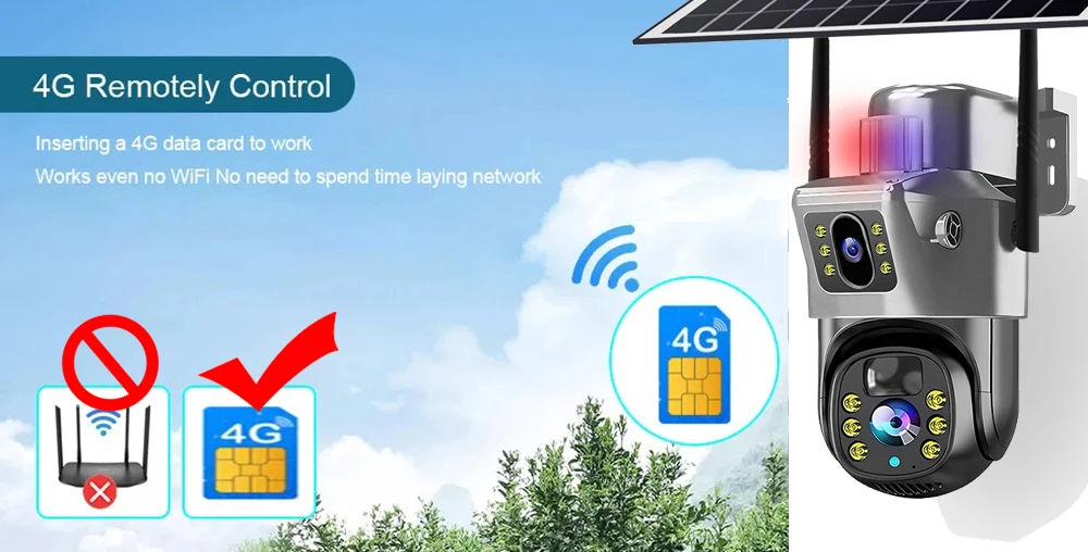 4G Solar Camera Outdoor Waterproof WiFi Security Cameras 4K 8MP HD Color Night Vision IP Wireless CCTV Surveillance PTZ Network